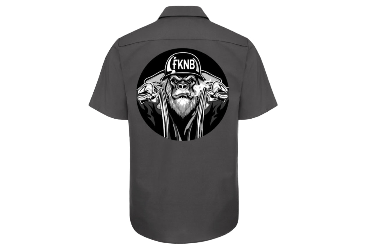 FKNBYKERZ, Gorilla; Gray Motorcycle Button Up Shirt
